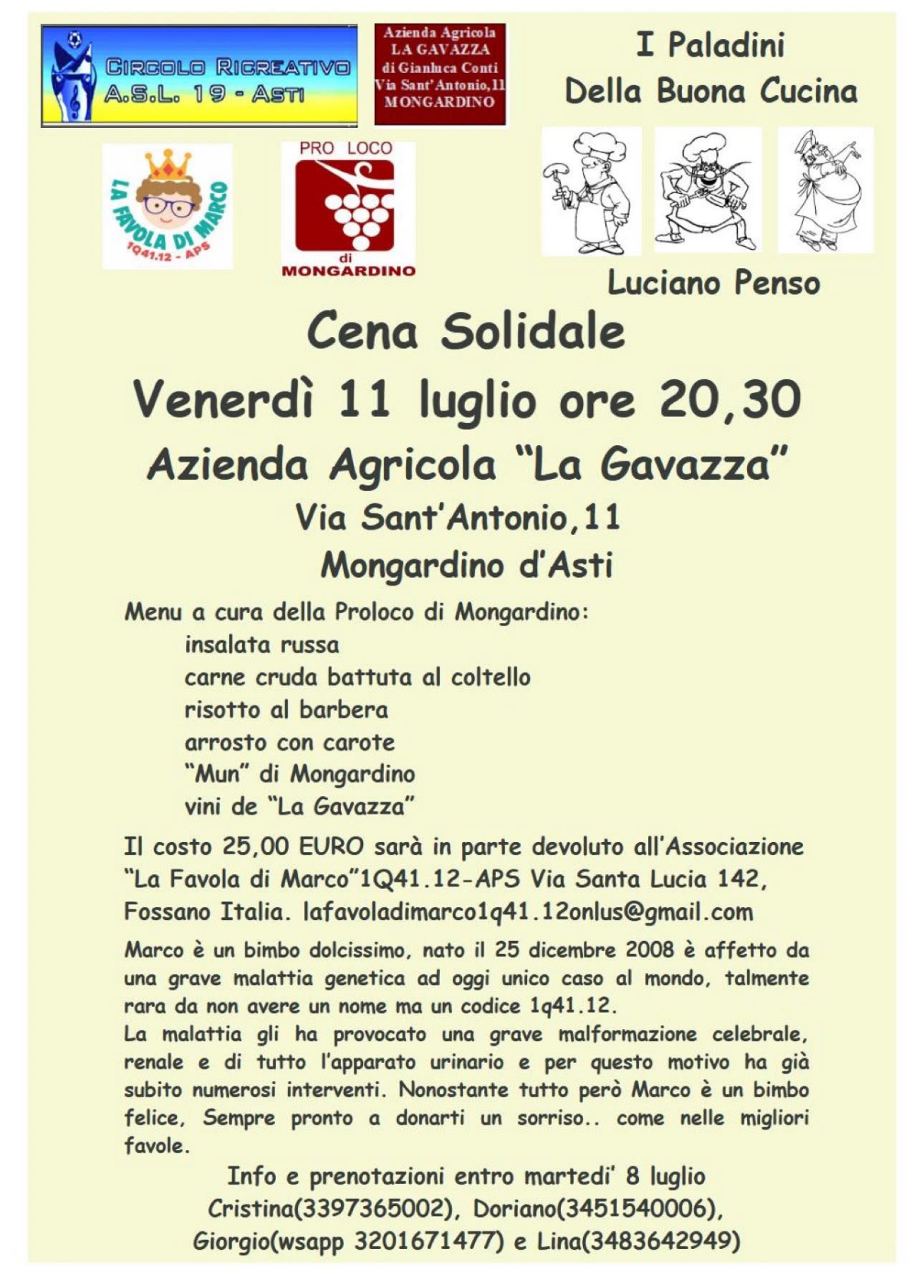 Cena solidale - a favore dell'Associazione "LA FAVOLA DI MARCO APS"